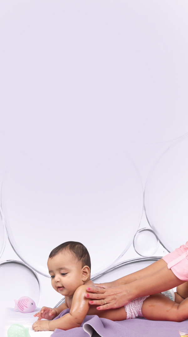 Pour a few drops of Himalaya Baby Massage Oil onto your palm and rub your palms for slightly warming it. Apply it all over your baby’s body including hands and legs, and gently massage.