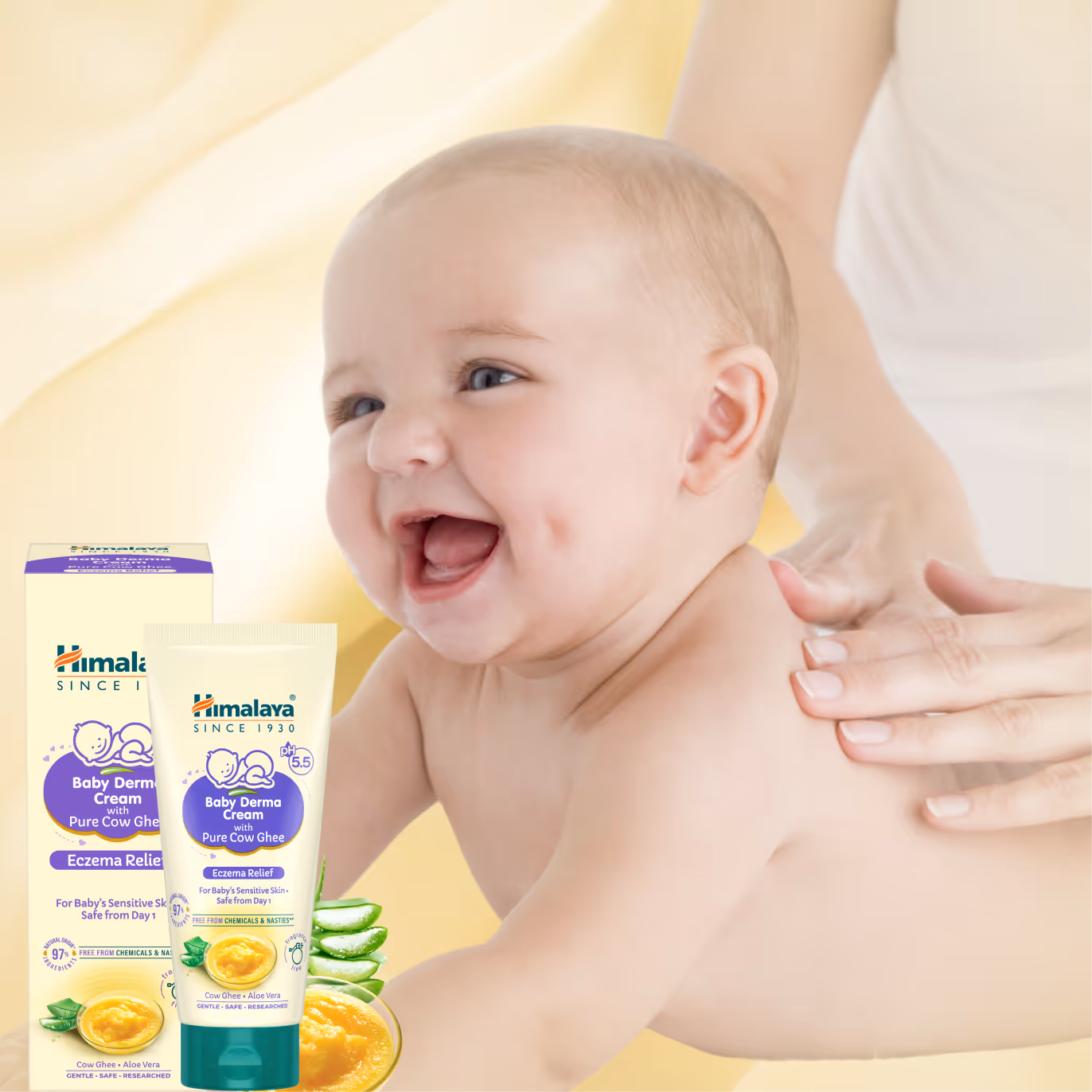 Baby Derma Cream with Pure Cow Ghee provides rapid relief from dryness associated with eczema.