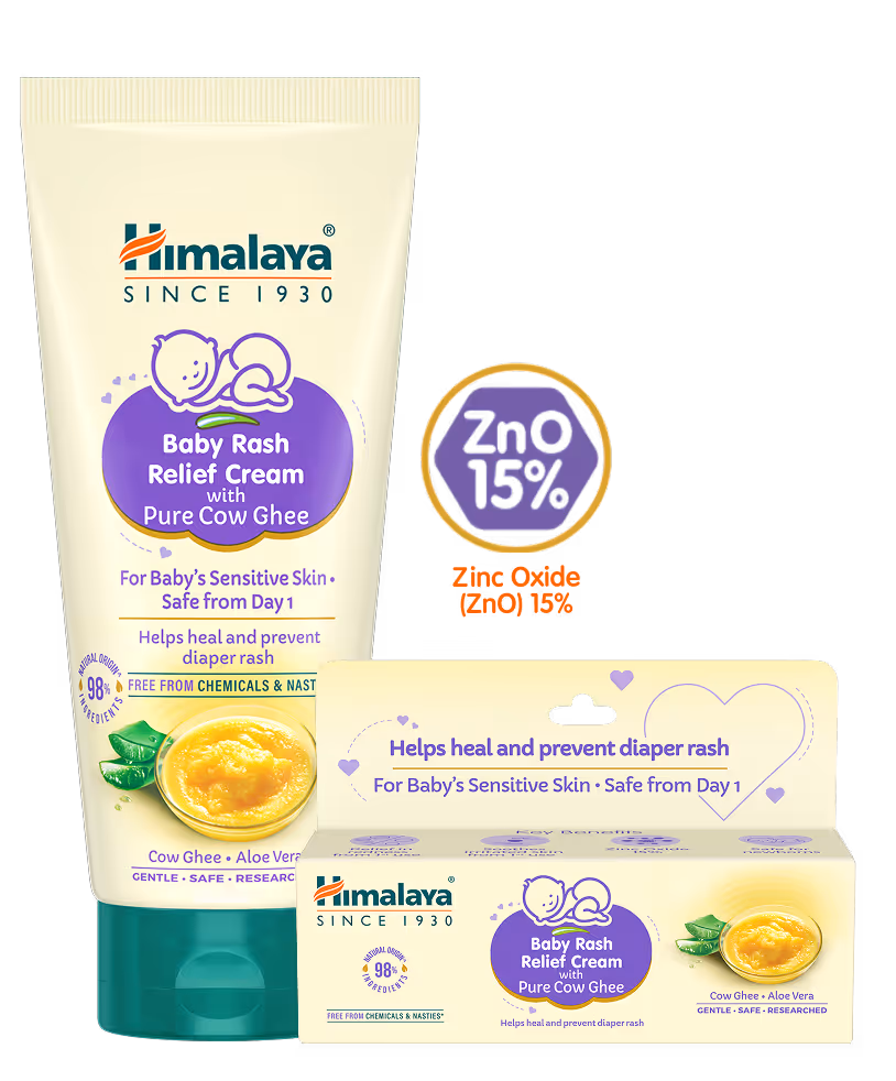 Himalaya Baby Rash Relief Cream with Pure Cow Ghee soothes irritated skin from the first use. It also provides relief from redness from the first application itself.